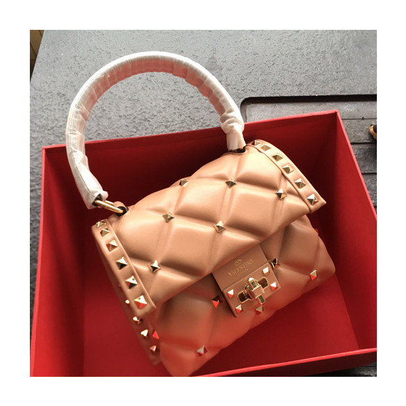 발렌티노 미니 나파 가죽 캔디스터드 탑 핸들 백 RW2B0D01 누드