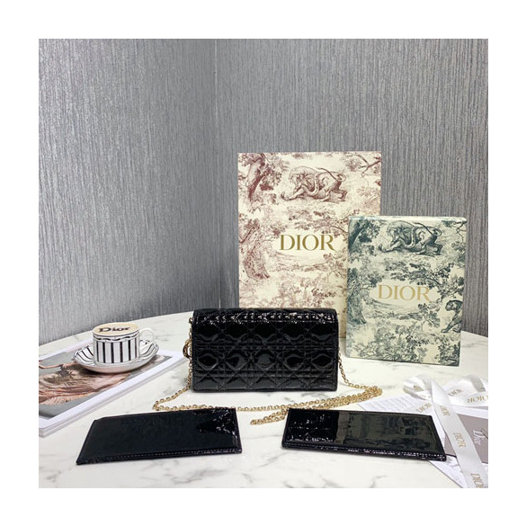 디올 에나멜 가죽 레이디 클러치백 S0204 블랙 > 디올