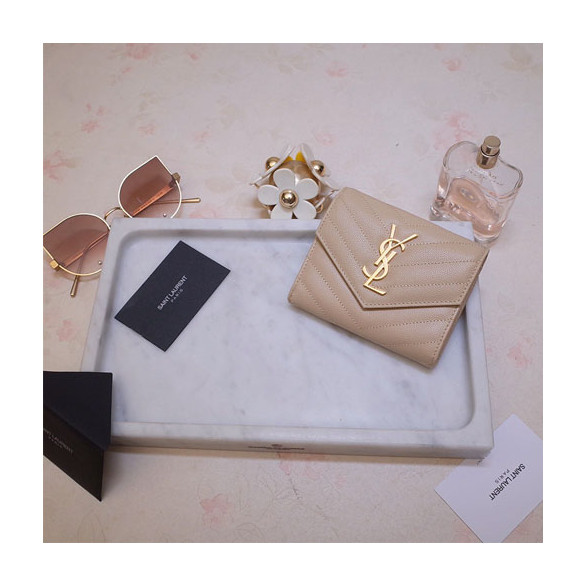 입생로랑 모노그램 컴팩트 3단 지갑 403943 캐비어 베이지