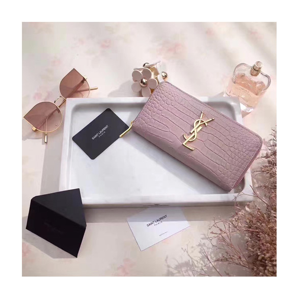 입생로랑 17S/S 신상 장지갑 370776 악어무늬 핑크 금장