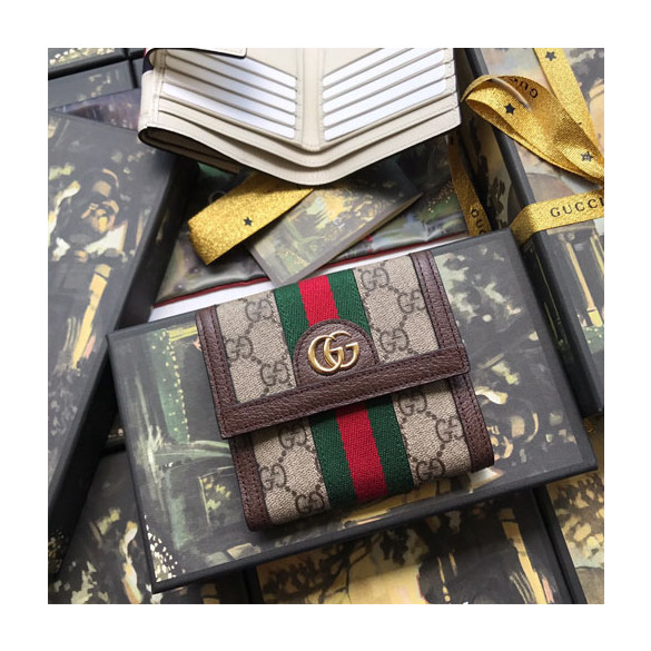 구찌 오피디아 GG 프렌치 플랩 지갑 523173 브라운