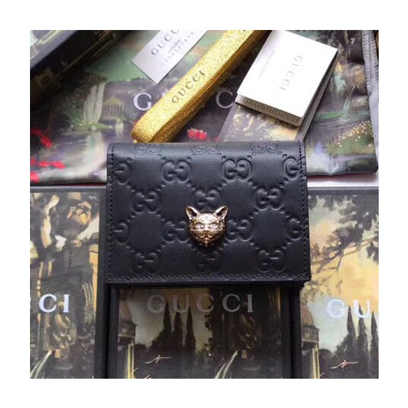 구찌 캣 장식의 시그니처 카드 케이스 548057 블랙