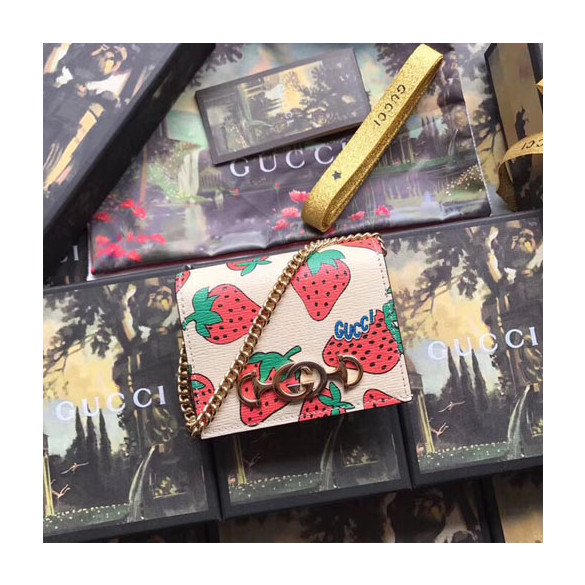 구찌 주미 가죽 카드 케이스 570660 딸기무늬