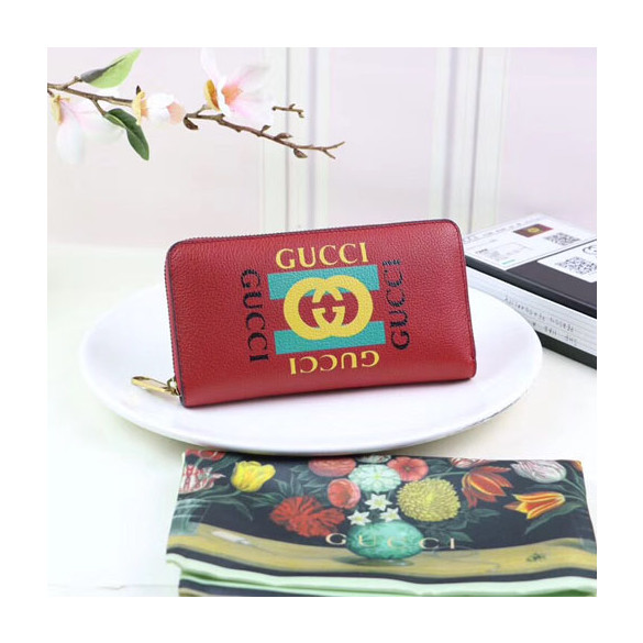 구찌 로고 지퍼 달린 가죽 지갑 496317 레드