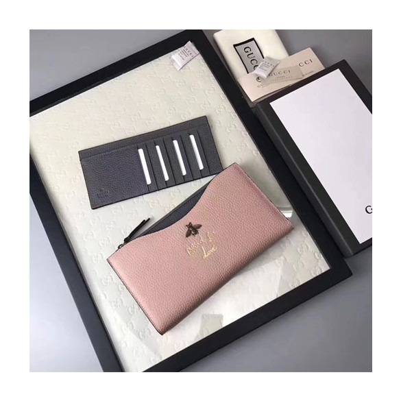 구찌 애니멀리어 트레블 카드장지갑 456683 핑크
