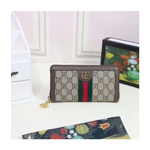 구찌 오피디아 지퍼 장지갑 523154 브라운